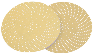 An aluminum oxide Hookit™ disc with precise hole design for improved dust extraction constructed on a C weight, intermediate paper backing. CW Array Hole Pattern.