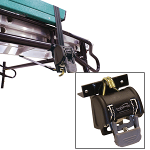No ladder rack tie-down is faster or more convenient to use. Ladder rack users can permanently mount the CargoBuckle Ladder Rack Tie-down System to their truck racks. Never search again for tie-downs or stretch cords to do the job. Valuable equipment is held securely with 7 feet of professional quality web and a strong double J-hook. The strap automatically retracts out of your way when not in use.