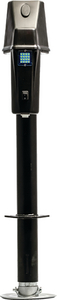 Raise and lower A-frame trailer tongue with just the press of a switch. Ball screw design raises loads efficiently, using less power than conventional electric tongue jacks. Overriding clutch protects against overloading. Front-entering manual drive handle provides clearance for tongue-mounted items. LED light for increased visibility.