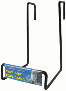 Sturdy black rack of vinyl-covered steel is easy to install to create more external storage. Hooks right over all RV ladders and holds up to 4 folding lawn chairs.