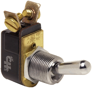10A at 12V DC. Silver contacts. Chrome plated brass handle. Mounting stem and