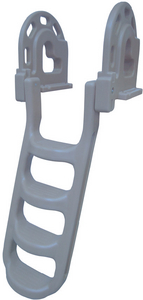 Tough and durable, this roto-molded ladder swings up and out of the way, locking in place when not in use. Will not corrode with exposure and will not fade or crack. Molded-in U.V. inhibitors and fungicides. Polyethylene, Stainless Steel hardware.