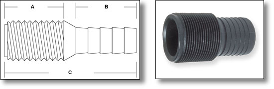 hose lines to ball valves and seacocks. Thread 3/4". Hose 3/4". Diagram: A - 1",
