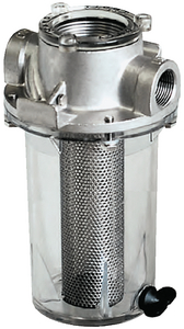 Standard single strainers. No tie rods or leaks under pressure or vacuum. Quick and easy mounting system allowing removal of strainer without tools. #304 Stainless steel filter basket. O-ring seals at strainer cap and between strainer head and sight glass. See-thru screw-on strainer cap allows easy, no-tools maintenance. Spanner wrench holes in cover allow the use of SW-2531 wrench. Install with pipe or hose. Do not use chemical or abrasive cleaners on sight glass. NOT TO BE USED IN POTABLE WATER SYSTEMS.