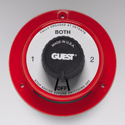 Battery selector switch without AFD, polycarbonate with sweep contacts. 230 Amps continuous, 345 Amps momentary made from UL 94-HB, UV stabilized polycarbonate.