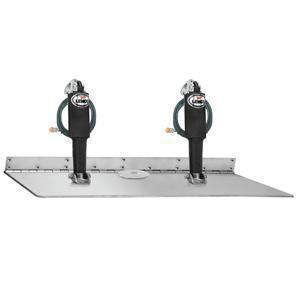 Designed for sport-fishing boats, high speed cruising boats and large commercial vessels. 7 Gauge flat - 304 SS blades with all stainless steel mounting hardware withstand the rigors of the most demanding conditions. No spray or mist when mounted in recessed pockets. 3/8" diameter hinge pin and 3.75" sacrificial anode. Single Actuator Systems have Vandar Upper Mounting Brackets with Gland Seal (#15085-001) and 10 Ga. SS lower mounting brackets with 3/8" SS bolts. Dual Actuator Systems have 10 Ga SS upper and lower mounting brackets with 3/8" SS bolts.