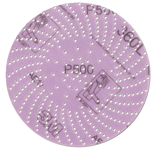 An aluminum oxide, open coat, load resistant Hookit disc with precise multiple hole design for improved dust extraction. Constructed on a film backing. Grade: P1000