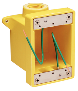 Yellow fiberglass with two KO holes. Will accept all 30A, 125V; 50A, 125V and