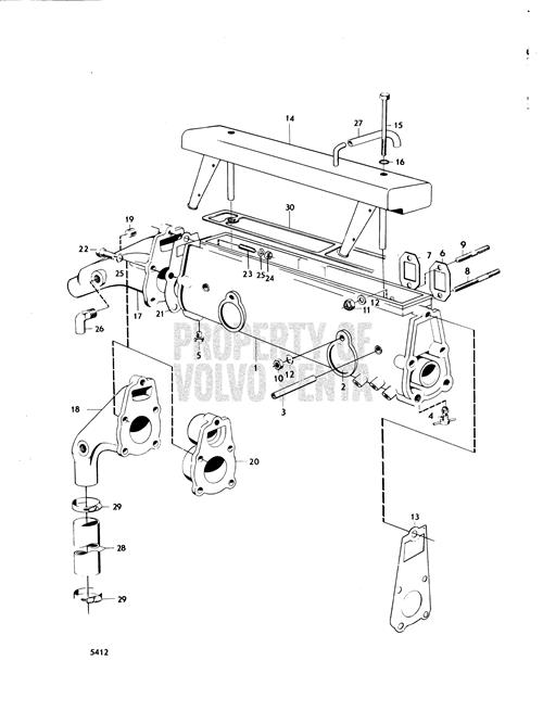 Volvo Penta Exploded view / schematic Induction- and Exhaust Manifold: B